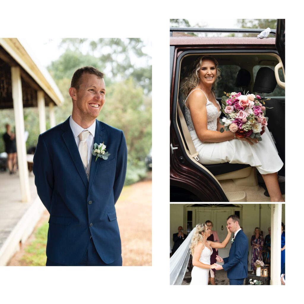 After the ceremony, we set off for Redgum Wine Estate for photos. The drive itself was a battle against heavy rain, but when we arrived, things only intensified , the skies opened up even further, and strong winds swept across the property.