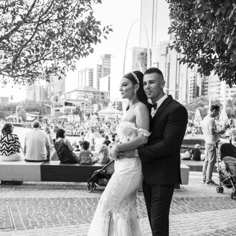 These lovers classy wedding at The Ritz Carlton Perth. We did photos around Elizabeth Quays there was a fireworks show on that evening so it was very busy but managed to get some amazing photos.