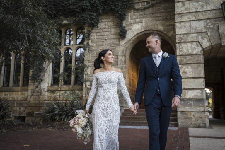Their wedding at Matilda Bay is one of the nicest spots in Perth for a riverside ceremony. Photos were done at UWA before the couple headed back to Matilda Bay Restaurant for the wedding reception.