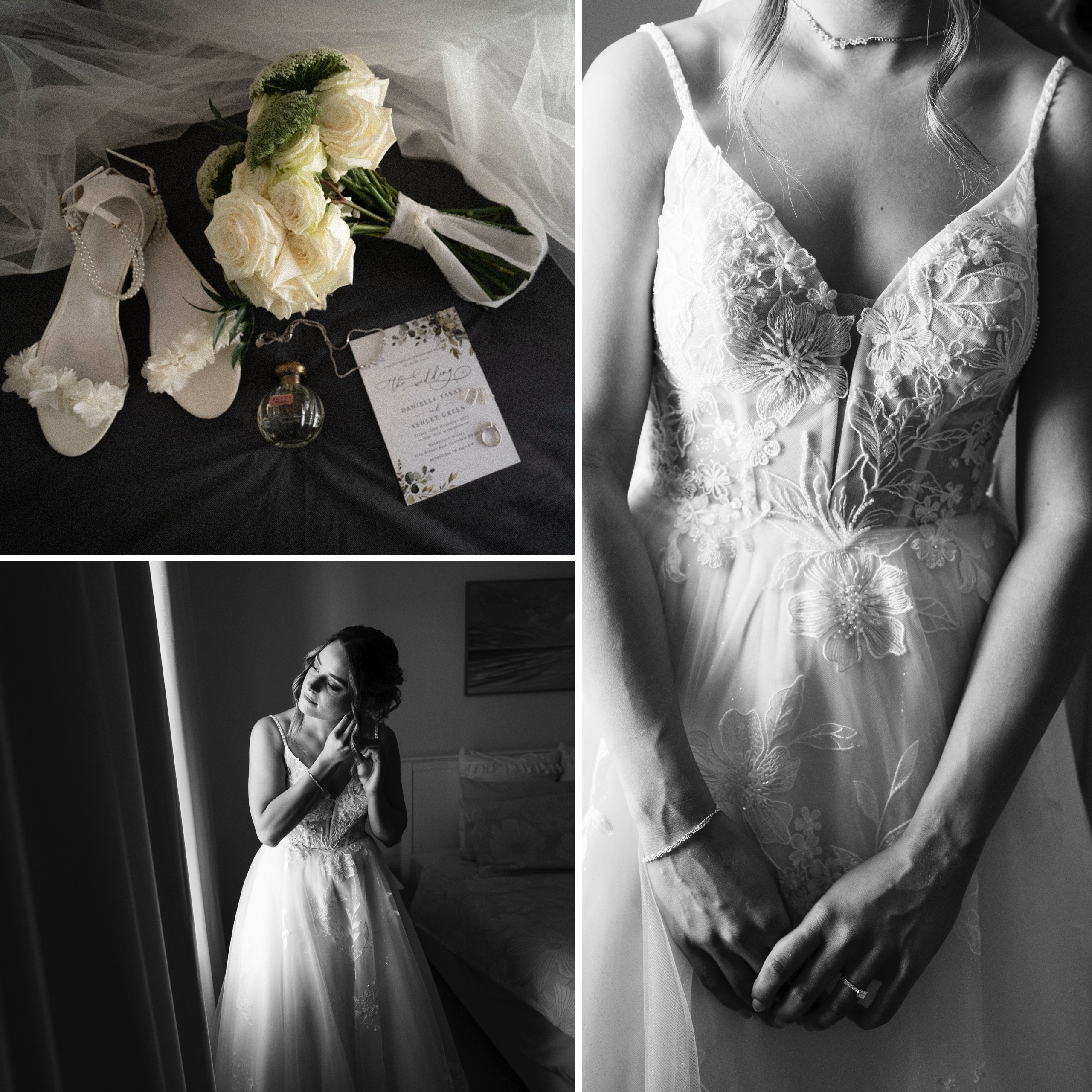 From there, I made my way to Danielle and her four bridesmaids. Music was playing, dresses were being steamed, makeup artists were putting the final touches in place — that beautiful mix of nerves and excitement that makes wedding mornings so special. Hair Stylist was Callie Carr Hair while Mother and Bride did the flowers and styling.